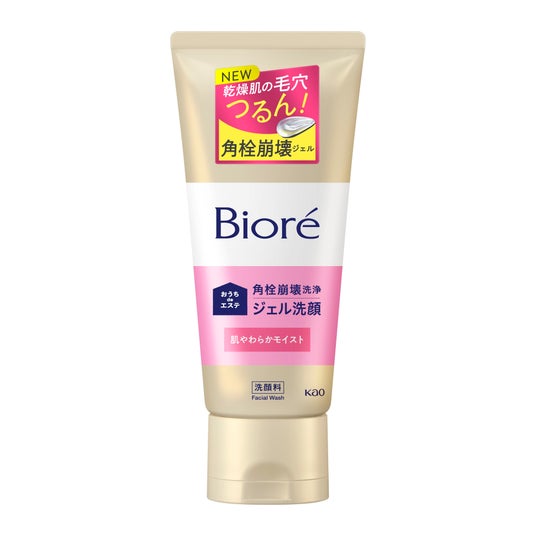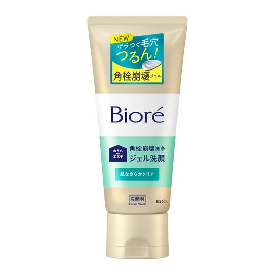 従来品である「ビオレ おうちdeエステ ジェル洗顔」は花王独自の角栓崩壊技術を採用し、ザラつく毛穴汚れを落とし、つるんとした肌に導きます。今回、肌になじませると、角栓内部からも皮脂が溶け出し、透明ジェルが白っぽく変化するように改良しました。