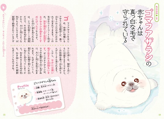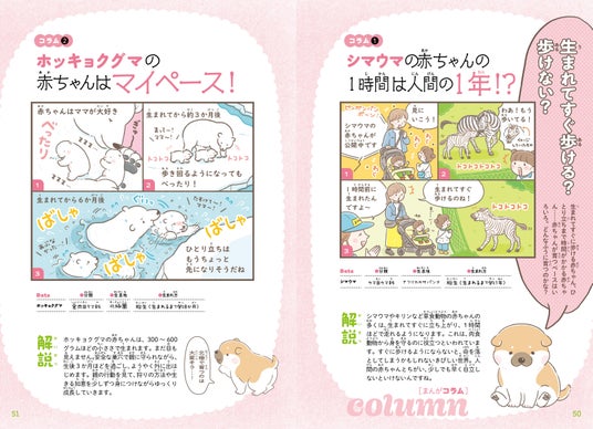 「ゴマフアザラシの赤ちゃんは真っ白な毛で守られている」「パンダの赤ちゃんは大人の1000分の1の重さ」「シバイヌの赤ちゃんはみんなでだんご寝」など。赤ちゃんのほほえましくて、応援したくなっちゃうような姿や行動をたくさん紹介! 読んでいくうちに、赤ちゃんのかわいさのヒミツがわかります。