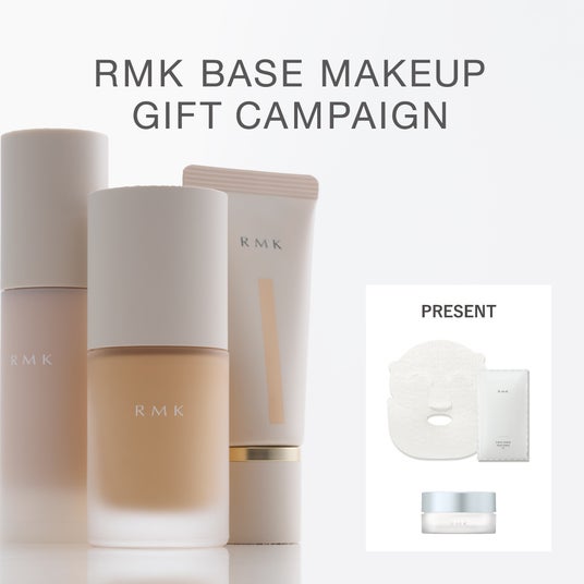 3月6日(金)より、全国のRMKコーナー(セルフセレクトショップ・免税店除く)および公式オンラインショップにて、RMK ベースメイク製品*をお買い上げのお客さまに、ご購入金額に応じてプレゼントをお渡しします。