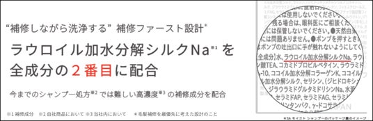 全成分中2番目に「ラウロイル加水分解シルクNa※7」を配合した“補修ファースト設計※8”