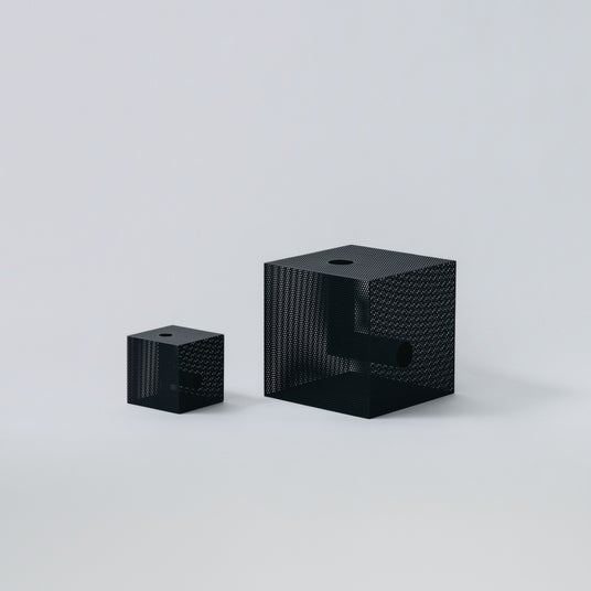 Punching Block box(パンチング ブロック ボックス)Sサイズ: W150×D150×H150 重量 約1.3kg Lサイズ: W300×D300×H300 重量 約4.7kg