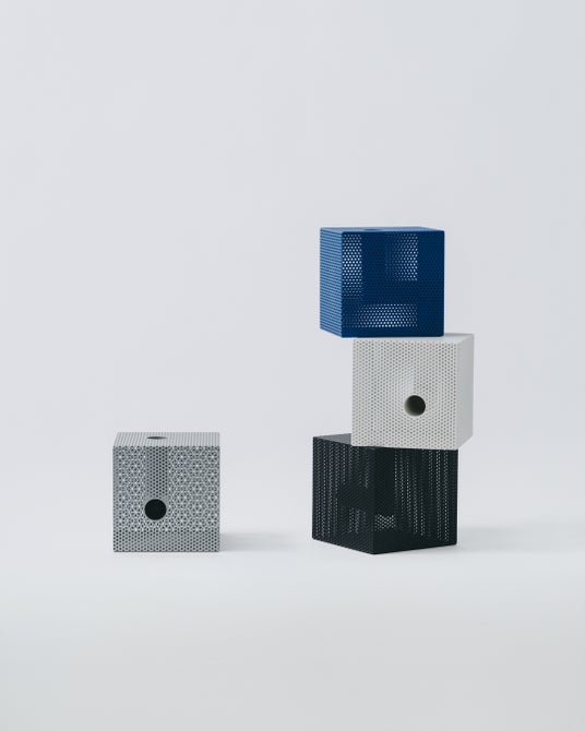 「Punching Block(パンチングブロック)」は、ものや が古道具を扱う中で感じてきた、物の価値や意味が一義的に定まらず、見る側との関係性によって立ち上がる余白を、工業素材と現代的な制作プロセスによって立体化しています。