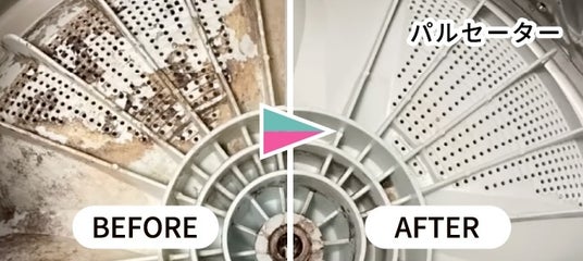 ご参考:3年間洗っていない洗濯槽における、商品使用前後のパルセーター裏 比較画像