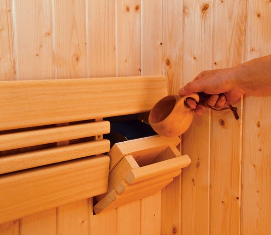 モリスサウナは、やわらかいを意味するラテン語「mollis」から名づけられました。 サウナヒーターがベンチ下に格納されているため広々した安全な室内でお子様も安心してサウナ入浴ができます。背もたれの専用ハッチからロウリュするとマイルドな蒸気がふりそそぎ、やわらかな空間が演出されます。