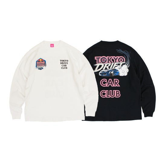 今回のコラボレーションでは、Tシャツ、ロンT、フーディ、スタジャンの全4型を展開。各アイテムには「Red Bull Tokyo Drift」の入場チケットおよびTokyo Drive Car Clubのステッカーが付属します。