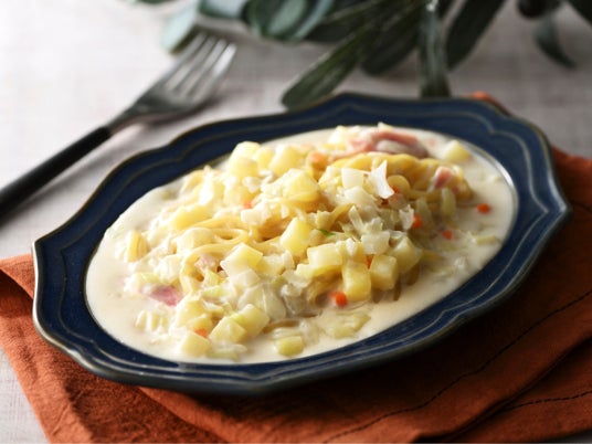 ベーコンのコクと海の幸の旨味が広がる、深みがあり濃厚な「白いベーコンチャウダー」と、お肉の旨味とコクをじっくり凝縮させた「ブラウンソースのボロネーゼ」。