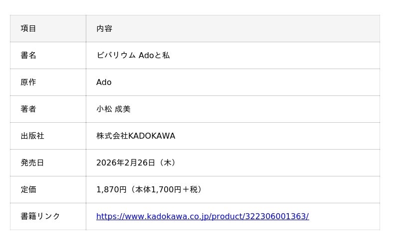 Adoの素顔に迫る『ビバリウム Adoと私』をKADOKAWAより刊行