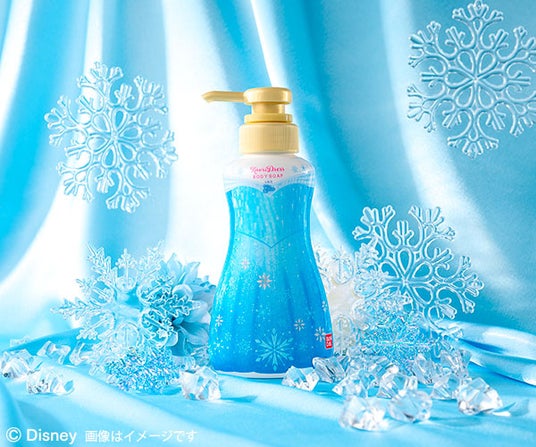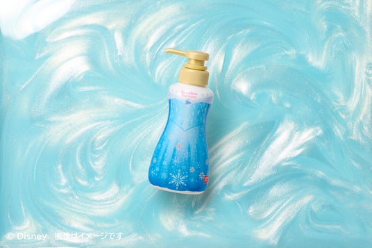 エルサのドレスをイメージしたボトルには、スノーパフュームのさわやかな香りのボディソープを詰め込み、贅沢なバスタイムへと導きます。