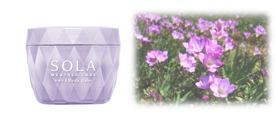 「SOLA WEATHER CARE」は、「ウェザーケア美容」に着目した輝く晴れツヤ髪へ導くヘアケアブランドです。新発売の「ソラウェザーケアクリスタルヘア&ボディバーム」は、体温でとろけるバームを髪になじませるだけで、まとまりのあるしっとりツヤ髪に仕上がります。手に残ったバームはそのまま乾燥しやすい指先やひざなどの保湿としても使用可能なヘア&ボディ用バームです。