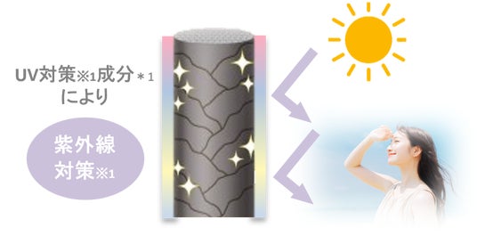 POINT1:UV対策※1晴れの日対策として、 UV対策※1成分*1を配合し、外出時の髪と手肌を360度バリア&コート。輝き髪の基礎を整えます。