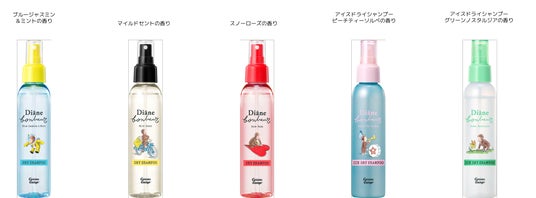 香りは、爽やかで人気の〈ブルージャスミン&ミント〉、シーンを選ばず使いやすい微香タイプ〈マイルドセント〉、ダイアンボヌールを象徴する〈スノーローズ〉、シリーズ初のアイスドライシャンプー〈ピーチティーソルベ〉、そしてアイスタイプ第2弾となる新商品〈グリーンノスタルジアの香り〉の全5種をラインナップ。それぞれ異なる、キュートな「おさるのジョージ」のイラストをあしらったデザインも魅力です。