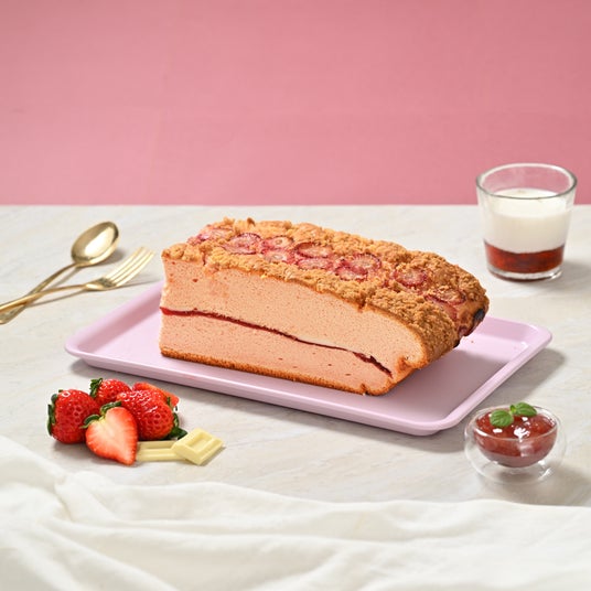 いちご風味のふんわり生地に、バター香るクランブルと甘酸っぱい苺の果肉をたっぷりトッピング。中には練乳ミルクシートといちごペーストをサンドし、甘みと酸味が絶妙に重なる贅沢な味わいに仕上げました。2025年で1番売れた商品です。