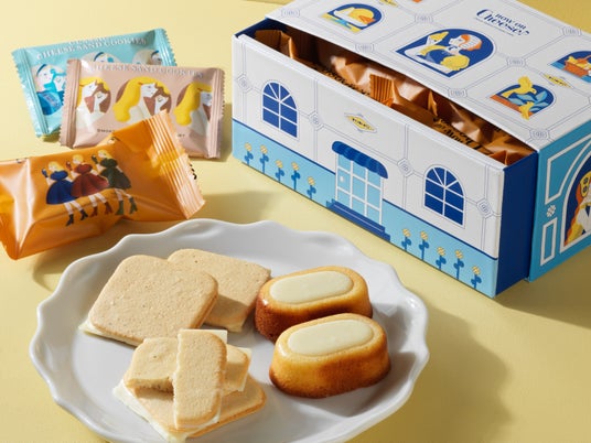 しっかりとしたチーズ感のラングドシャ「クラシックチーズサンド スモーク& カマンベール」と「クラシックチーズサンド カラメル&ゴルゴンゾーラ」。カマンベールとエダムチーズにほんのりレモンをきかせて仕上げた「チーズケーキ ナウ カマンベール&エダム」を一度に楽しめる一箱です。