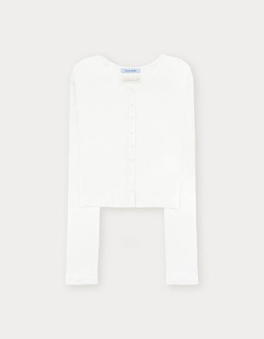 2.Lovey Button Cardigan ¥8,580 ( Light Blue / Ivory / Grey)