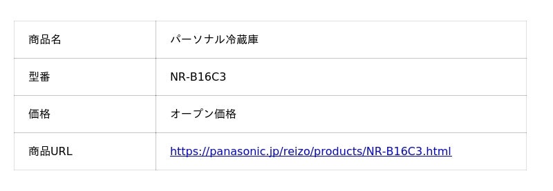 <商品情報>パーソナル冷蔵庫 NR-B16C3