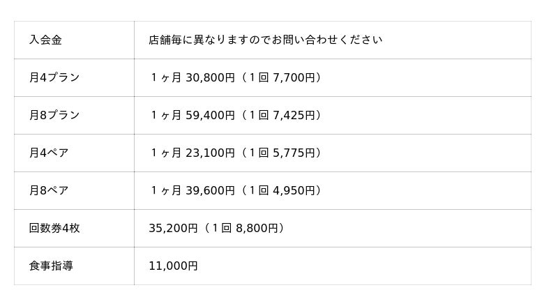 そして、綺麗なダイエットを実現するため、かたぎり塾では無理なく運動を続けられるような金額を設定し、続けやすい価格の1回あたり4,950円~(月8回ペアトレーニングの場合)でマンツーマントレーニングサービスを提供しています。