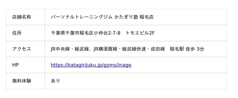 <パーソナルトレーニングジムかたぎり塾 稲毛店のご予約はこちらから>