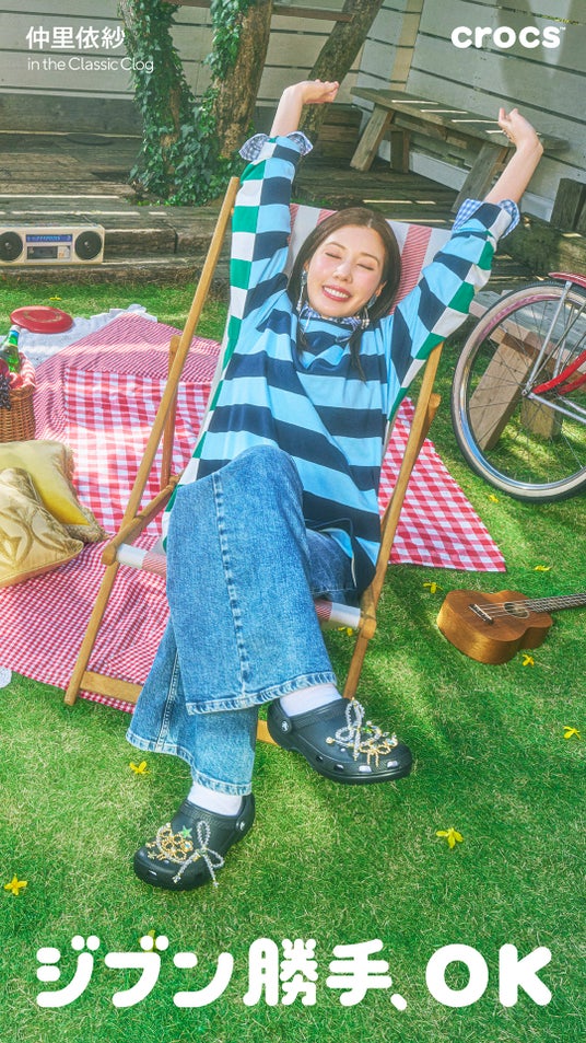 仲里依紗さんが「ジブン勝手、OK」というメッセージとともに、その日の気分に合わせたスタイリングを楽しむスペシャルムービーを展開。「ジブン勝手、OK」には、どんな自分も肯定し、ありのままの私を好きでいようという、個性を大切にするクロックスならではの想いを込めています。「ごきげん」「のんびり」「やるぞ!」といった日々変わる気分に寄り添いながら、どんな時もクロックスとともに“自分らしさ”を大切にする仲さんの自由でポジティブな魅力が詰まった内容です。