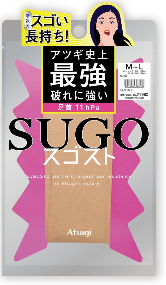 スゴストは、「パッケージから取り出そうとしたら伝線してしまった」「大事な場面で穴が開いてしまい焦った」といったストッキングあるある悩みを解消すべく開発された、アツギ史上最強 破れに強い新次元レッグウェアブランドです。
