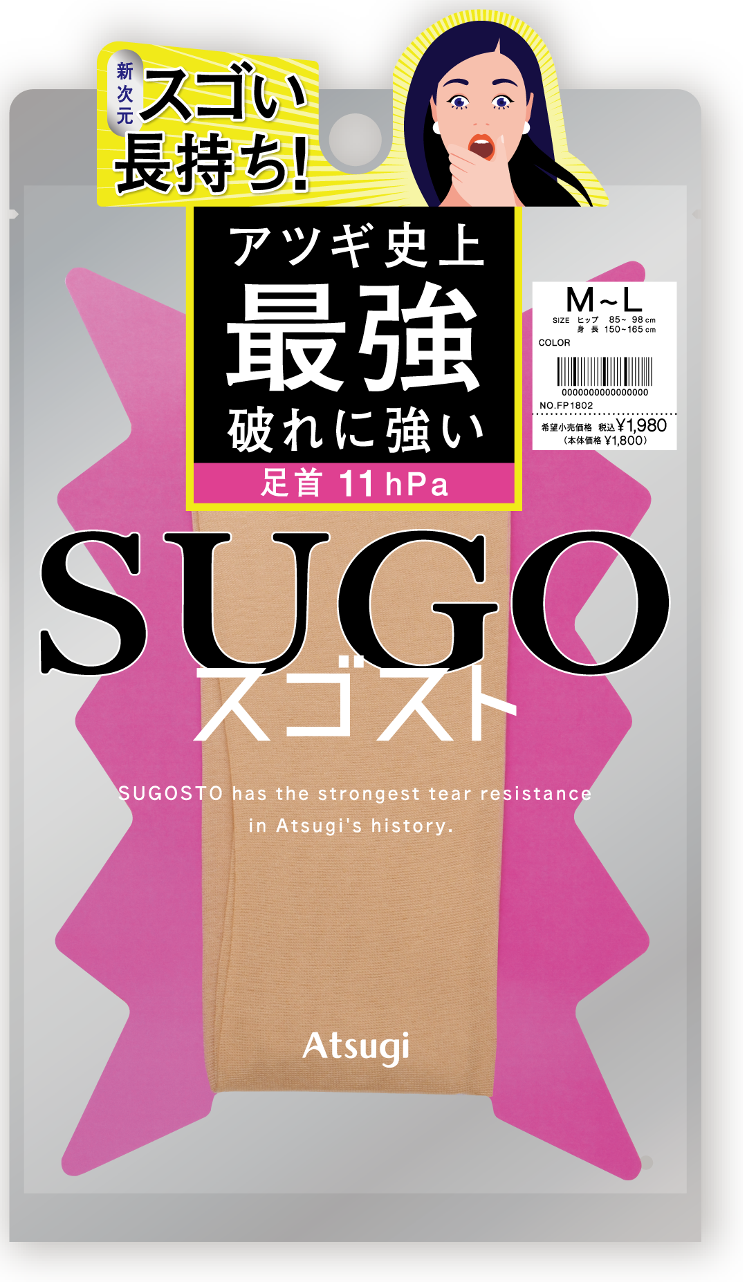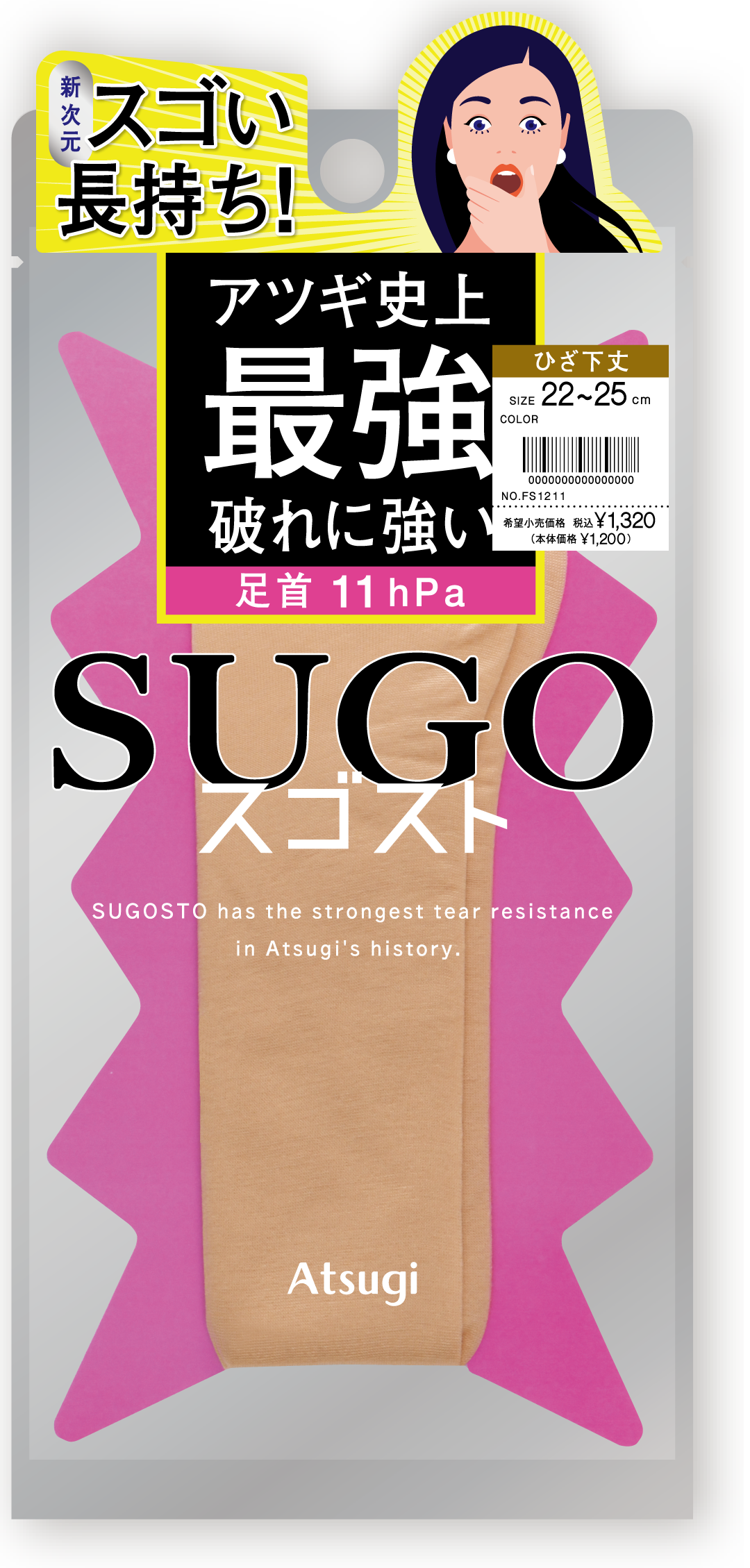 スゴストは、「パッケージから取り出そうとしたら伝線してしまった」「大事な場面で穴が開いてしまい焦った」といったストッキングあるある悩みを解消すべく開発された、アツギ史上最強 破れに強い新次元レッグウェアブランドです。