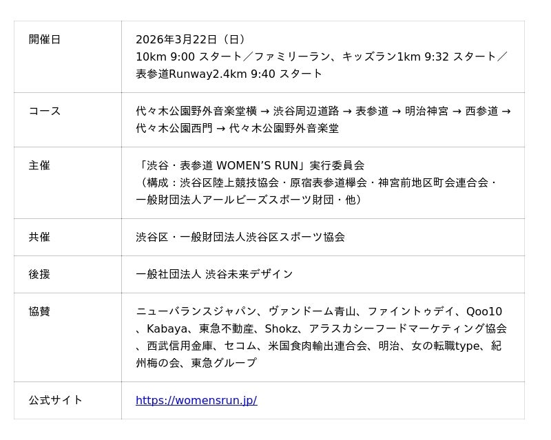 約5,000人の女性ランナーが渋谷・表参道エリアを駆け抜ける「渋谷・表参道 WOMEN’S RUN」(主催:「渋谷・表参道 WOMEN’S RUN」実行委員会、運営:株式会社アールビーズ)を、3月22日(日)に開催します。