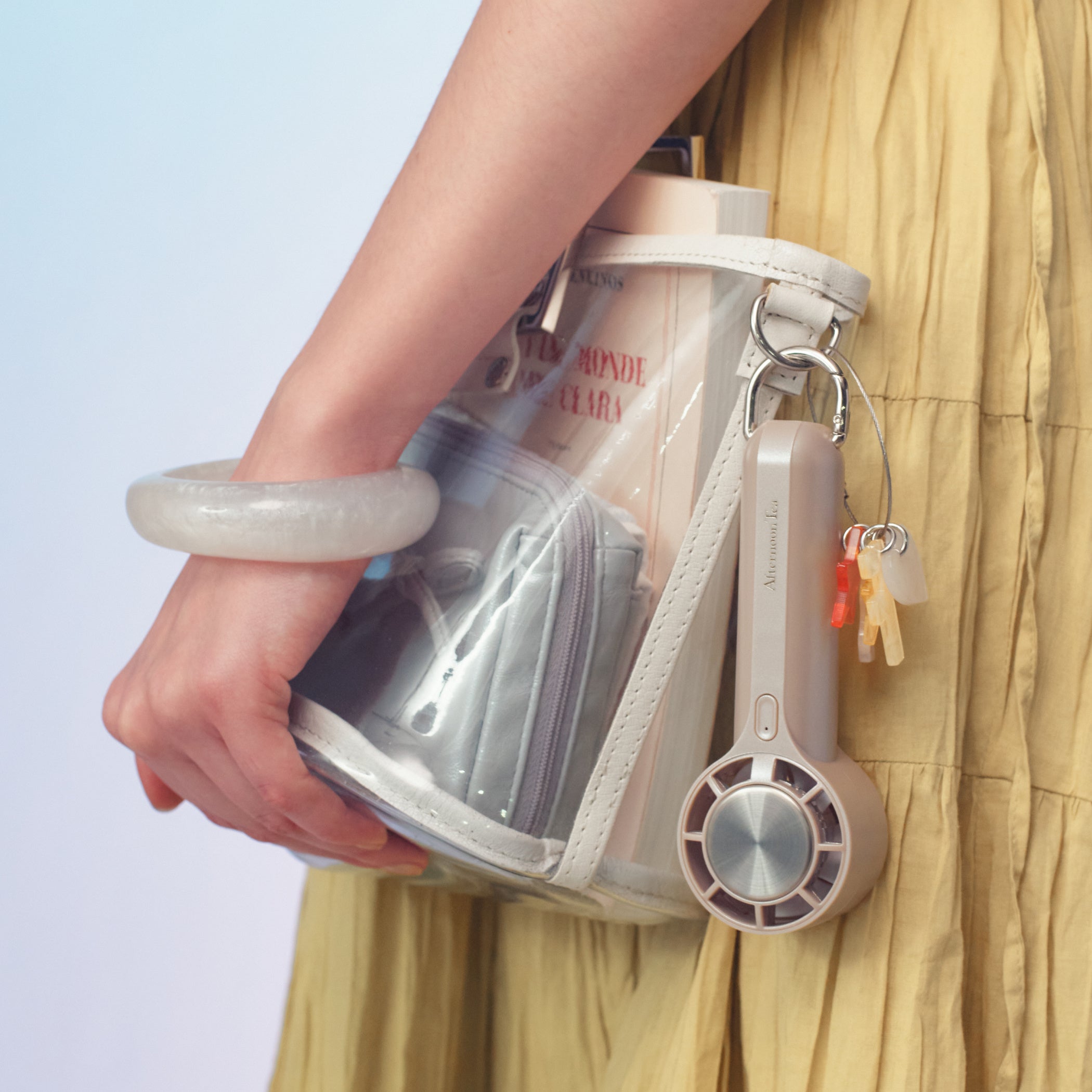 昨年大好評を博した「アイスプレートハンディファン」から、待望のミニサイズが新登場。カラビナ付きでバッグに簡単に取り付けられ、まるでチャームのようにスマートに携帯できます。さらに、6つの機能をギュッと1台に凝縮した新型「アイスプレート6WAYファン」も同時に登場。昨年の人気機能に加え、アイスプレートを搭載することで、よりひんやり感を重視した多機能仕様に進化しました。デザイン面では、マーブル加工とパール加工を施し、見た目の美しさとファッション性を徹底追及。アフタヌーンティー・リビングならではの洗練されたデザインに仕上げています。夏のお出かけやオフィスでの使用にぴったりな、スタイリッシュかつ実用的なアイテムが揃います。