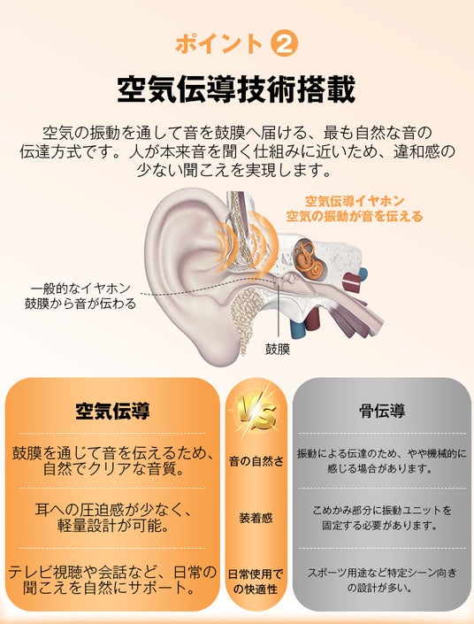 2..会話がもっと聞き取りやすく・空気伝導技術による自然な音の取り込み