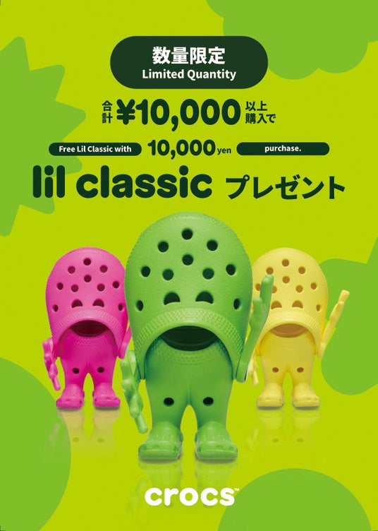 税込1万円以上ご購入の先着100名様に、「リルクラシック」をプレゼントいたします。クロッグをモチーフにした、キュートな笑顔が特徴のフィギュアです。ジビッツ(TM) チャームでカスタマイズも可能なかわいい限定アイテムを、この機会にぜひゲットしてください。