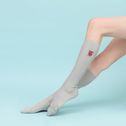 <RESEXXY × 靴下屋 刺繍ラメリブハイソックス>