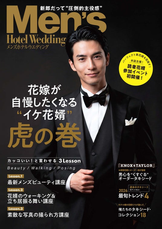 今後では、年に一度実施している新郎向けの別冊「Men’s Hotel Wedding」を特別付録に。新郎だって”圧倒的主役感”をまとってほしいという思いで、「メンズビューティ」「花婿のウォーキング&立ち居振る舞い」「素敵な写真の撮られ方」「オーダータキシード」など、男心をくすぐるテーマを集めました。花嫁が自慢したくなるほどの”イケ花婿”を目指せるスペシャルな一冊です。