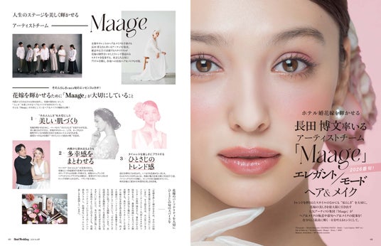 ビューティ特集は、長田博文さん率いるアーティストチーム「Maage」による「エレガント/モード ヘア&メイク」。