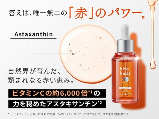 株式会社Global Style Japan が展開するスキンケアブランド「hitohada(ヒトハダ)」から、抗酸化成分アスタキサンチンを高濃度で配合した『タイムシフト美容液』が新登場。