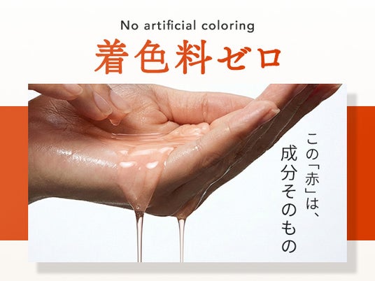 肌へのやさしさを追求し、余計な添加物は一切カット。着色料を使わず、成分本来の色を美容液にしました。この赤色はアスタキサンチンを贅沢に配合したこだわり処方設計の証です。