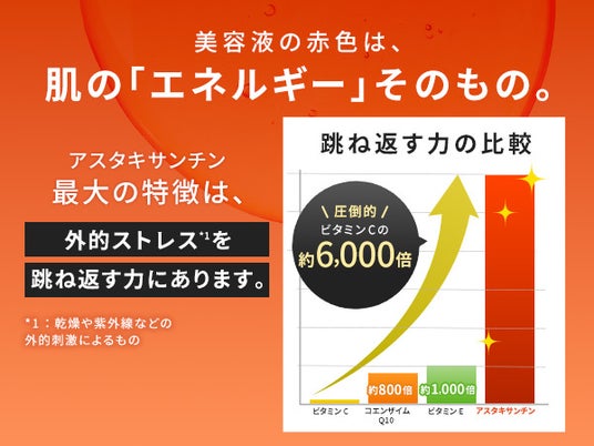 – ビタミンCの約6,000倍(*4)といわれる抗酸化力を持つアスタキサンチンが肌本来のポテンシャルを引き出します。