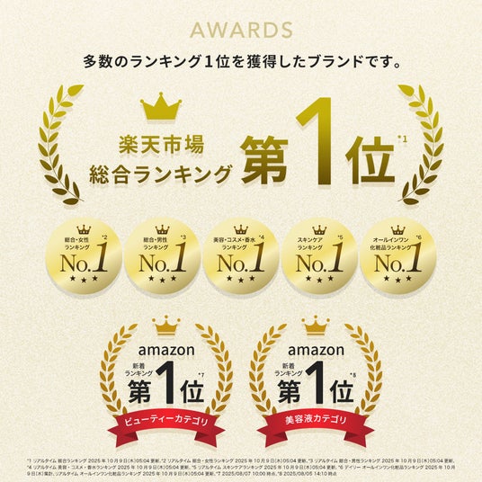 2025年8月にブランド立ち上げ後、多くの方に商品を手に取っていただいたことで、Amazon(*1)と楽天市場(*2)にてランキング1位を獲得。