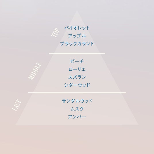 ミドルノート:ピーチ、ローリエ、スズラン、シダーウッド