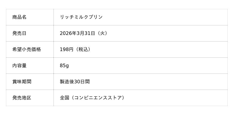 トーラク株式会社(本社:兵庫県神戸市東灘区向洋町西5丁目5番、代表取締役社長:毛利 功一郎)は、「リッチミルクプリン」を2026年3月31日(火)から全国発売いたします。