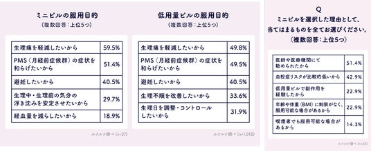 Q. 【ミニピル】の服用目的について、当てはまるものをお選びください。(複数選択)