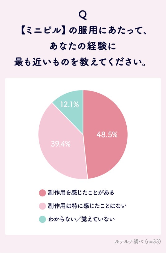 続いて、ミニピルを服用するにあたっての副作用の経験について聞いてみました。