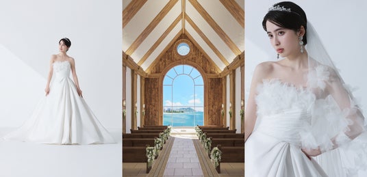 「さあ、ウエディングドレスを着こなそう」 というブランドメッセージのもと、ドレスが主役ではなく、“ドレスを着る花嫁様ご自身”が輝くドレス選びを大切にしてきたアールイズ・ドレス。今回のコレクションでは、ブランド初の試みとなる会場限定ドレスを開発。挙式会場の世界観と調和するドレスを提案することで、この場所だからこそ描ける花嫁様の理想の姿を形にしました。空間や演出だけではない、特別な1日に身に纏うウエディングドレスまでも、そのチャペルの世界観で包まれることで、唯一無二の体験価値を創出します。