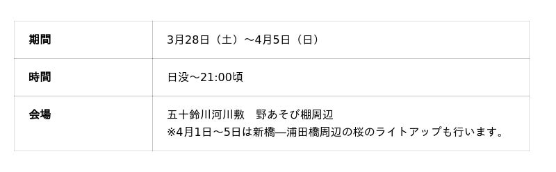 4月1日からは新橋~浦田橋周辺のライトアップもスタート。