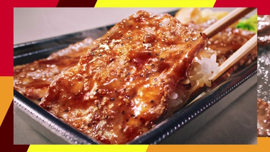 『新・ビーフカットステーキ重』の美味しさポイントである、柔らかくジューシーなお肉を迫力のあるシズルで表現しています。躍動感のある焼きシズルや、絶品和風ソースがお肉とごはんにかかる場面などが見どころです。また、春の訪れを感じる『たけのこごはん』も登場します。
