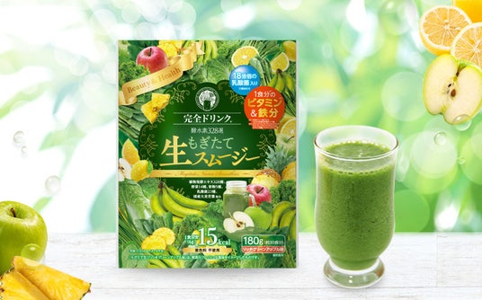 「完全ドリンク酵水素328選もぎたて生スムージー(リッチグリーンアップル味)」は、置き換え習慣をサポートする粉末タイプのスムージーです。