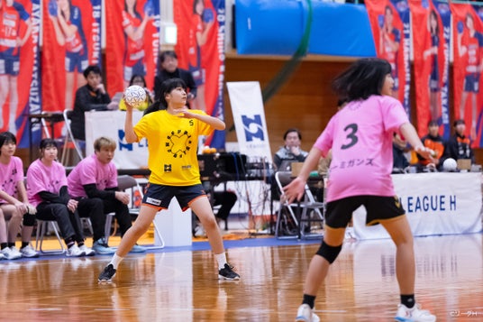 3月8日の国際女性デーに合わせて、リーグH、株式会社モルテン、ヒュンメルが協働し、3月7日に国際女性デーマッチを開催。株式会社モルテンが行っている『Keep Playing』の活動の一環として、U-15女子チームが音響や実況などトップリーグと同じ環境でプレーするエキシビジョンマッチが実施されました。普段とは異なる環境に選手たちは緊張しつつも、自分の名前が会場に響く実況を聞き、ハンドボールの楽しさを改めて実感している様子で、今回の経験がスポーツを続けていくきっかけになることが期待されます。