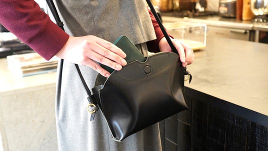 必要なものはしっかり入るのに、大きすぎないサイズで設計。体のラインに自然に添い、電車や人込みでも周囲の邪魔にならず、持ち歩きやすい日常に馴染むバランスです。