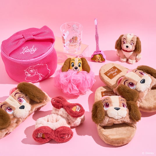 さらに、シンデレラの『ルシファー』をはじめ、おしゃれキャットの『マリー』、わんわん物語の『レディー』といった、愛らしい“イヌネコ”キャラクターたちのアイテムも、特別なピンクデザインでラインアップ!ポーチやストラップ、ステーショナリー類をはじめ、ランドリーグッズやバスグッズまで、毎日が楽しくなる実用的なアイテムが充実しています。