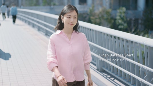 今回のCMでは、リネンシャツの軽やかな素材感と、日常のさまざまなシーンに自然となじむベーシックさを伝えることを大切にしました。街を歩くシーンから開放的な風景へと場面がシームレスにつながる演出や、トップスのカラーが変化する表現を通して、ONとOFFを軽やかに行き来できる一着であることを描いています。