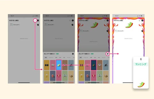 ステッカーは無料でご利用いただけます。ホームカレンダーやカレンダーリストにある各カレンダーのデイリー画面から設定できます。