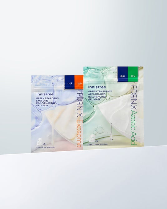 イニスフリーは、この注目成分PDRNに着目。さらに、近年美容成分として関心が高まっている「エクソソーム」や「アゼライン酸」を組み合わせることで、肌悩みに合わせたアプローチを叶えるシートマスクを開発しました。美容クリニック発想の成分を取り入れた新しいスキンケアとして、毎日のケアに取り入れやすいシートマスクで、ハリのある健やかな肌へ導きます。