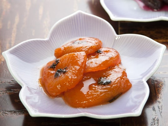あんずに刻んだしそを混ぜ、蜂蜜等を使用してジャム状に煮た秋田の郷土食。